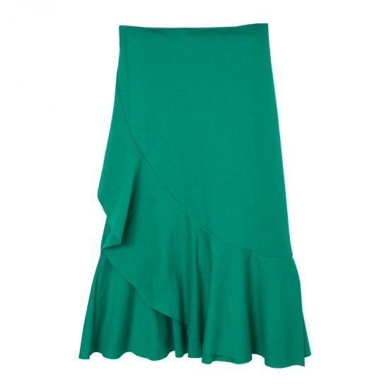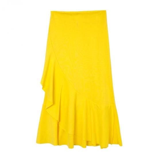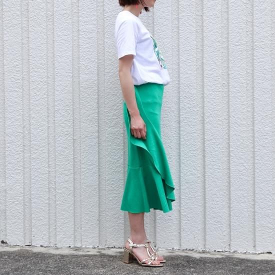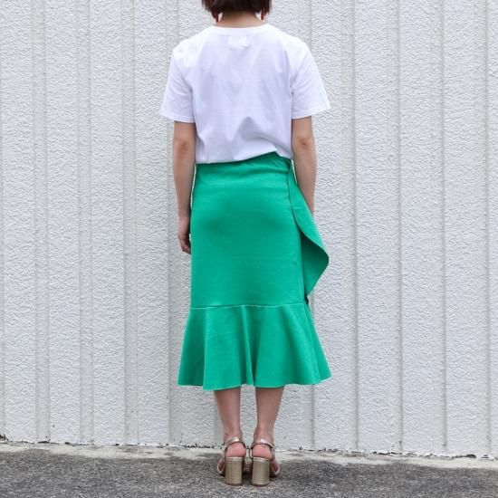 夏らしいカラーのアシンメトリースカートはカットソー素材で