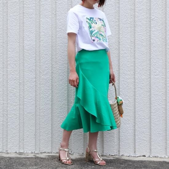 プリントやロゴTシャツで夏のカジュアルなスカートスタイルを楽しめるアイテムです。