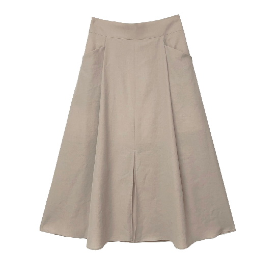 一見シンプルなボックスフレアのシルエットのスカート。実はパネル切り替えで