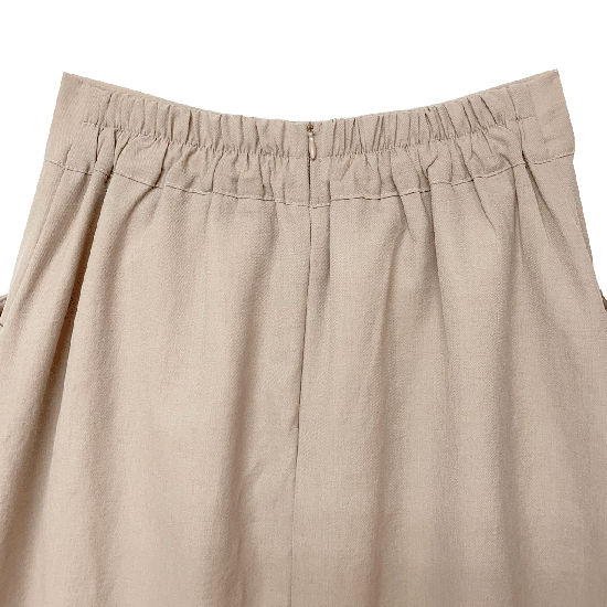 さらりとした夏素材ながらニュートラルなカラーなのでシャツやブラウスできちんと感を出したり