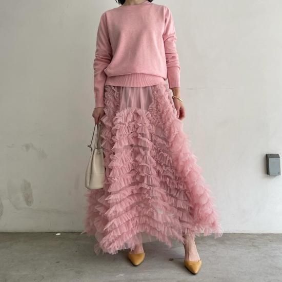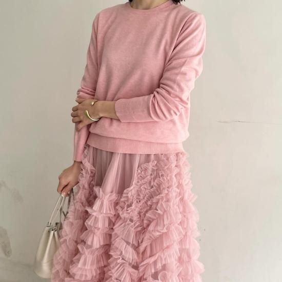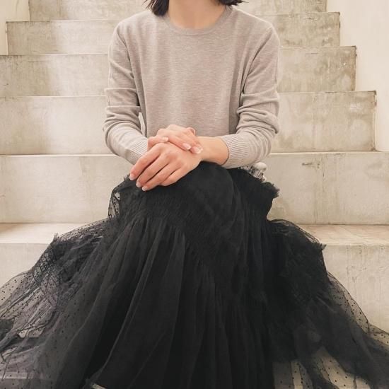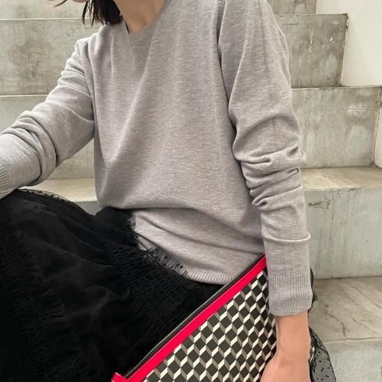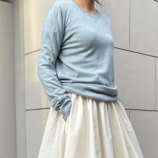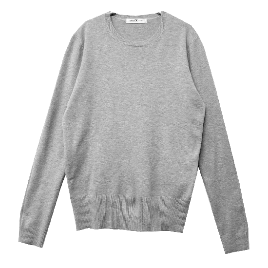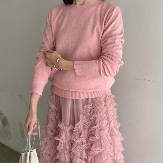 少しロング丈のベーシックなハイゲージニット、メランジのムラのある糸がのっぺりした
