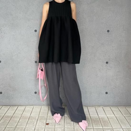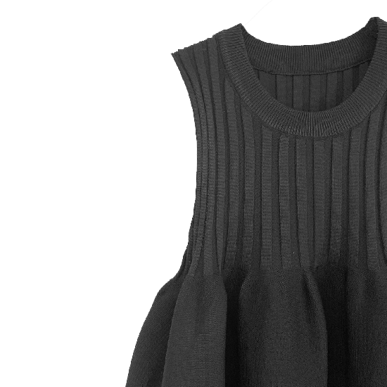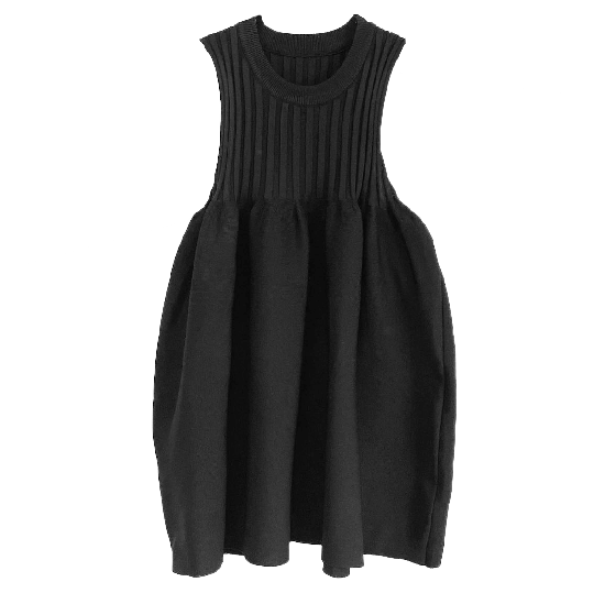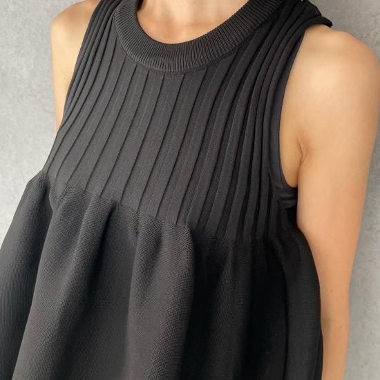 ハイゲージのデザインニットチュニック。アメスリ風のコンパクトな首周りと
