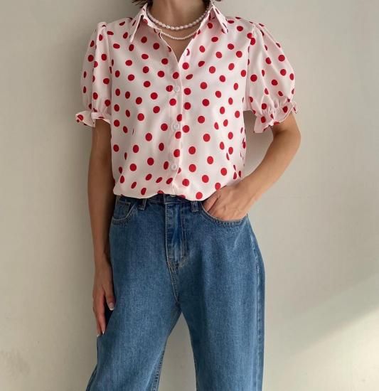 ドットパフブラウス
