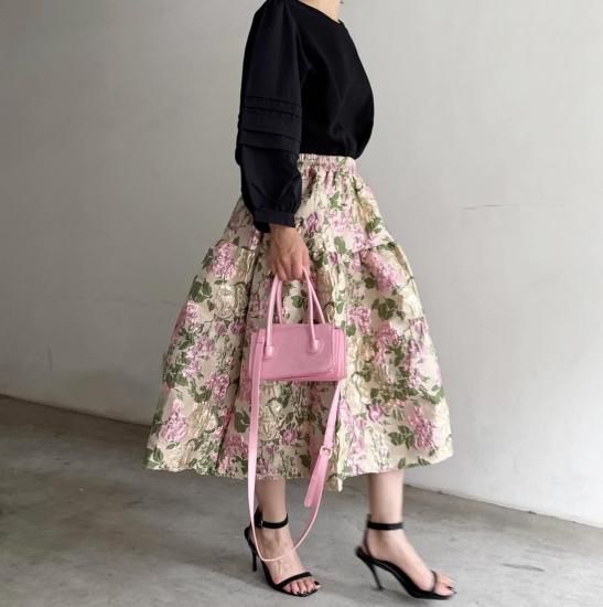 はりのある素材感だからパニエを入れたようなふんわりシルエット。