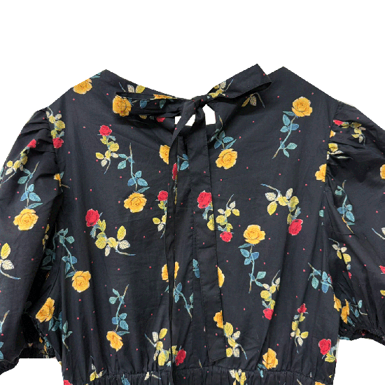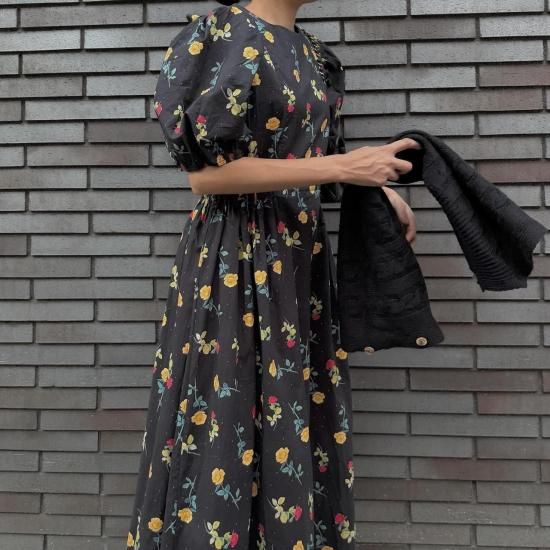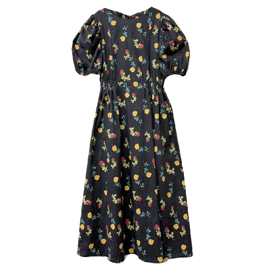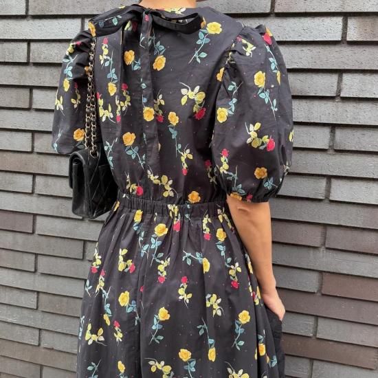 背中のリボンや花柄のベースになっているドットのプリントもポイントです。